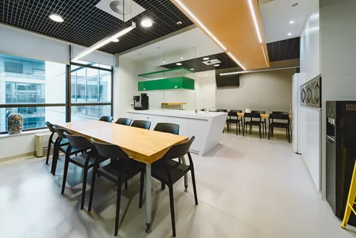 The building is located on Aleje Jerozolimskie, offering excellent access to public transportation. It is situated on the edge of the city center—just 15 minutes by car from Okęcie Airport and 5 minutes from the Central Railway Station.