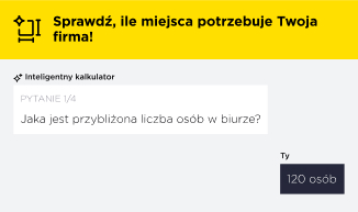 Nasz kalkulator pomoże Ci wstępnie oszacować jakiej wielkości biura potrzebuje Twoja Firma.