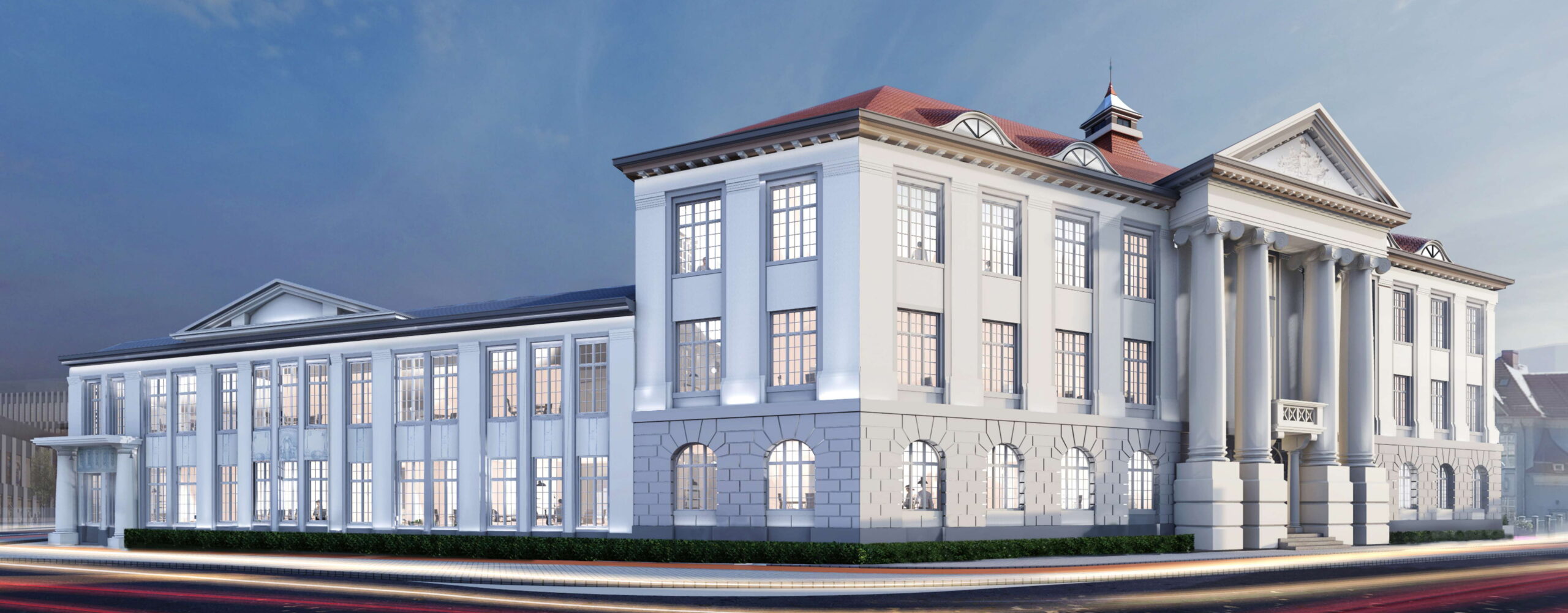 Budynek Dawnej Dyrekcji Huty 1-go Maja to zabytkowy, monumentalny gmach o unikalnym charakterze, położony w sercu Gliwic. Powstał na początku XX wieku jako siedziba Zakładów Huldschinky’ego, a z czasem pełnił funkcję Dyrekcji Huty 1-go Maja. Obiekt oferuje ponad 4 600 m kw. powierzchni biurowo-usługowej rozmieszczonej na czterech kondygnacjach naziemnych i jednej przyziemnej. Wyróżnia się dwoma historycznymi wnętrzami – gabinetem dyrektora i salą konferencyjną – które zachowały oryginalne wyposażenie, kominki, obrazy i stolarkę, i zostaną pieczołowicie odrestaurowane pod nadzorem konserwatora zabytków. Budynek zapewnia dostęp do elastycznych modułów najmu i nowoczesnych udogodnień, takich jak klimatyzacja, światłowód, system kontroli dostępu, monitoring oraz całodobowa recepcja i ochrona. Obiekt łączy historyczny prestiż z funkcjonalnością biurowca klasy A.