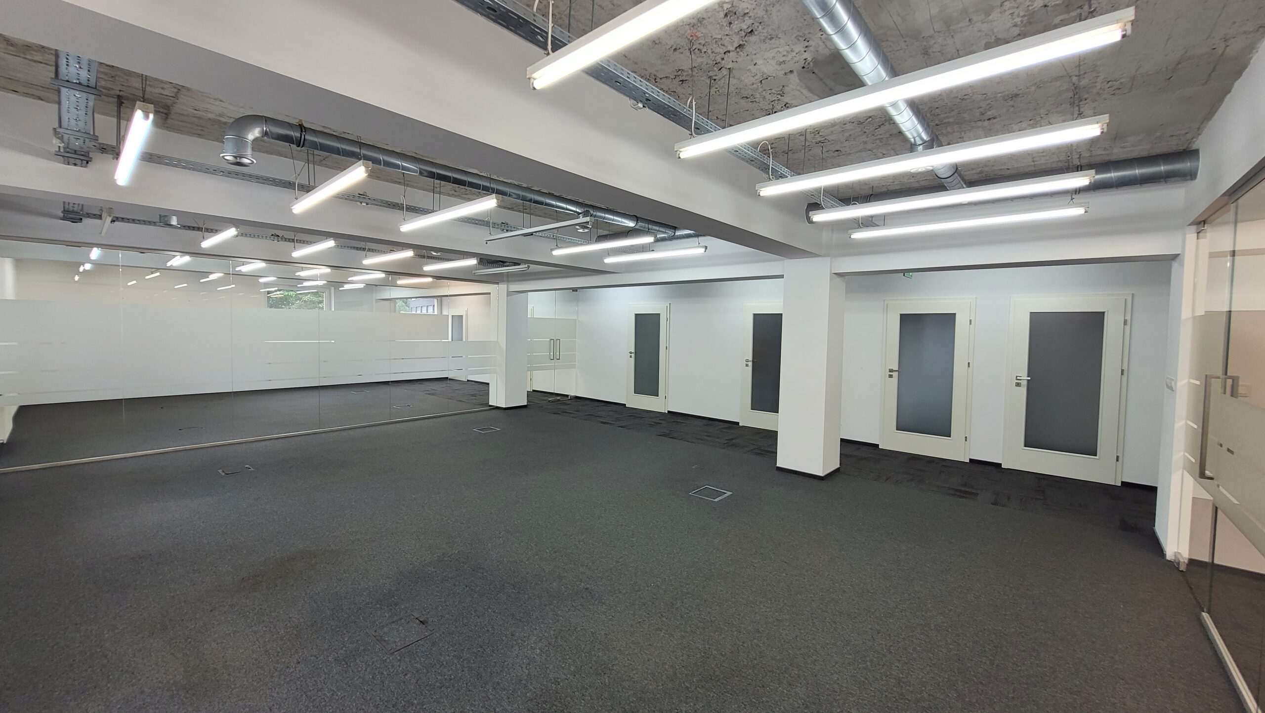 Dąbrówki 16 to czterokondygnacyjny budynek biurowy klasy B, zlokalizowany w centralnej części Katowic, w pobliżu głównych arterii komunikacyjnych oraz nowoczesnych kompleksów biurowych. Obiekt przeszedł modernizację, dzięki czemu oferuje nowoczesne wnętrza i elastyczne powierzchnie biurowe, które można dowolnie aranżować – zarówno jako open space, jak i w podziale na mniejsze moduły. Standard techniczny obejmuje klimatyzację, podnoszone podłogi, podwieszane sufity, tryskacze, czujniki dymu, światłowód, monitoring, kontrolę dostępu, system BMS oraz uchylne okna. Do dyspozycji użytkowników jest naziemny parking na ogrodzonym terenie oraz recepcja i całodobowa ochrona. Budynek zapewnia komfortowe warunki pracy, bezpieczeństwo oraz łatwy dostęp do infrastruktury handlowo-usługowej i gastronomicznej centrum miasta.