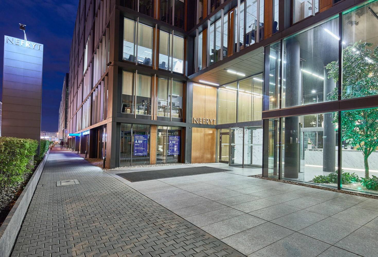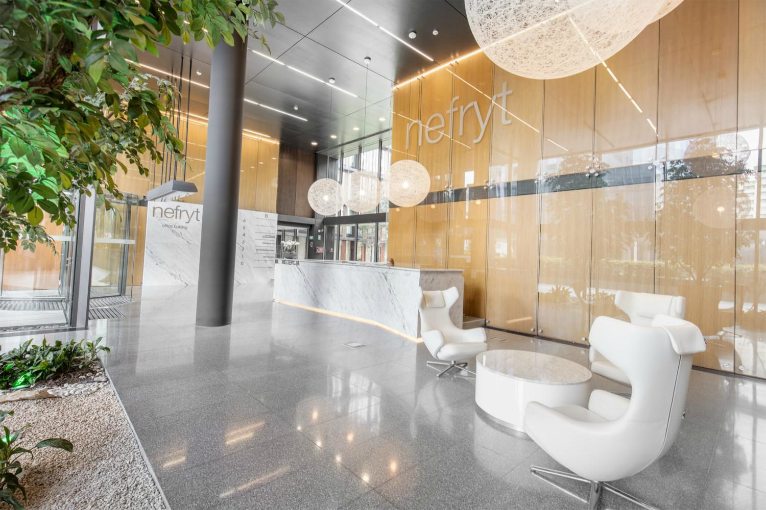 Nefryt to nowoczesny obiekt biurowy zlokalizowany na warszawskim Mokotowie. Ten 7-kondygnacyjny budynek oferuje na wynajem około 15 200 m2 atrakcyjnej powierzchni biurowej. Ponadto dwupoziomowy parking podziemny zapewnia do dyspozycji najemców 264 miejsca parkingowe. Duże przeszklenia umożliwiają doskonałe doświetlenie powierzchni biurowej naturalnym światłem. Wszystkie biura wyposażone są m.in.: w uchylne okna, podnoszone podłogi, podwieszane sufity, klimatyzację z możliwością regulacji temperatury oraz czujniki dymu. Dogodna lokalizacja umożliwia sprawy dojazd do innych części miasta. W sąsiedztwie budynku znajduje się jedno z większych centrów handlowych w Warszawie - Galeria Mokotów.