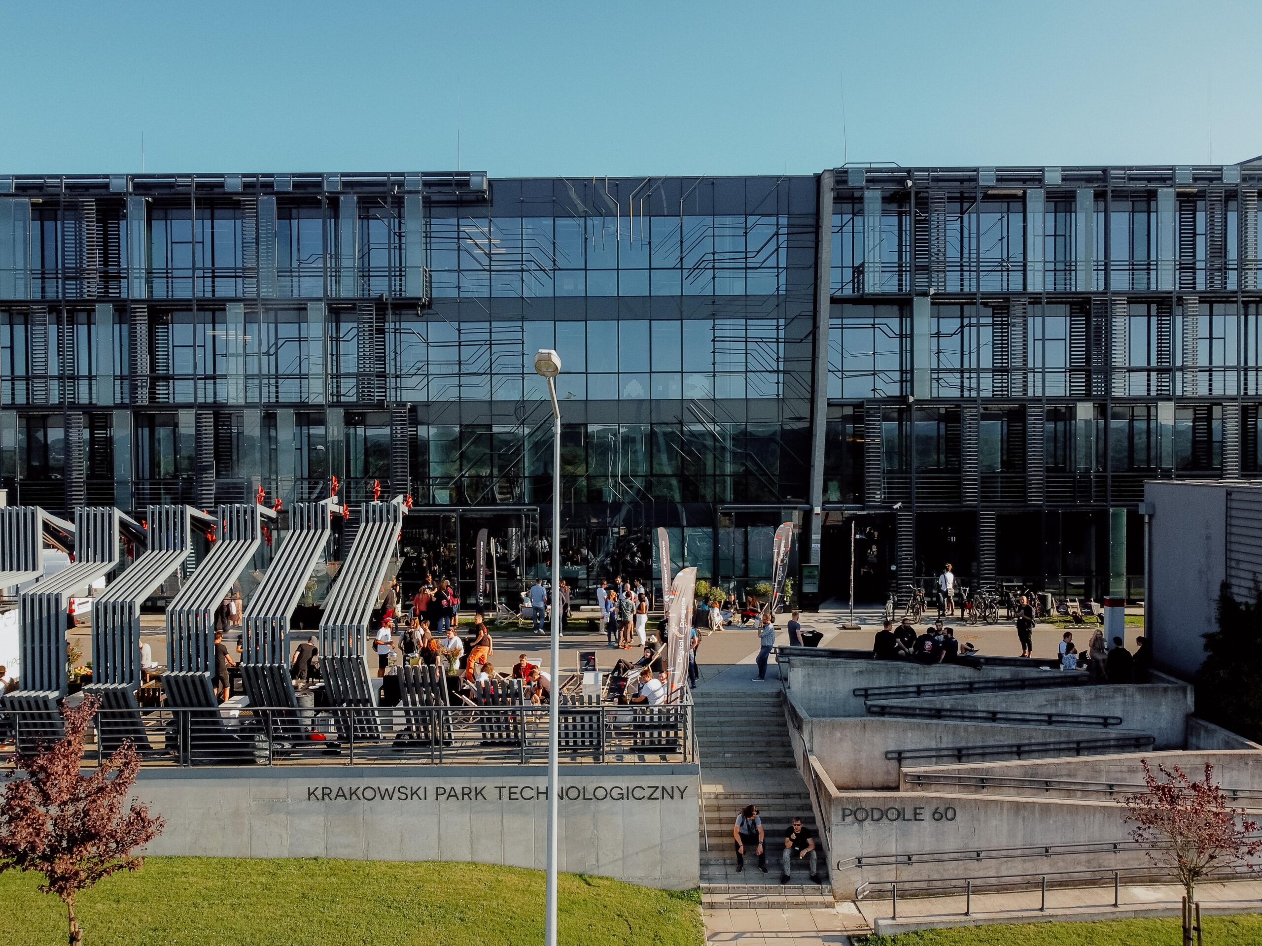 Podole 60 to nowoczesny, pięciokondygnacyjny budynek biurowy klasy A, będący siedzibą Krakowskiego Parku Technologicznego, zlokalizowany w południowo-zachodniej części Krakowa, w dzielnicy Dębniki. Budynek oferuje ok. 12 000 m² powierzchni biurowej brutto z elastycznym układem pięter, umożliwiającym indywidualną aranżację przestrzeni. W obiekcie znajdują się biura, strefa coworkingowa oraz Inkubator Technologiczny z dostępem do laboratoriów multimedialnych, showroomu i Data Center. Najemcy mogą korzystać z w pełni umeblowanych i profesjonalnie wyposażonych pomieszczeń, nowoczesnych sal konferencyjnych, restauracji w budynku oraz naziemnych i podziemnych miejsc parkingowych. Budynek zapewnia wysoki standard techniczny: klimatyzację, podwieszane sufity, podnoszone podłogi, światłowód, kontrolę dostępu, monitoring, tryskacze, czujniki dymu, uchylne okna i szybkie windy. W otoczeniu znajdują się sklepy, lokale usługowe, piekarnia, kawiarnia, salon kosmetyczny, klinika medyczna i przedszkole. Teren zewnętrzny jest starannie zagospodarowany zielenią i elementami małej architektury. Lokalizacja umożliwia szybki dojazd do autostrady A4 (ok. 6 min) i centrum Krakowa (ok. 20 min do dworca głównego), a w pobliżu znajdują się przystanki autobusowe i tramwajowe.