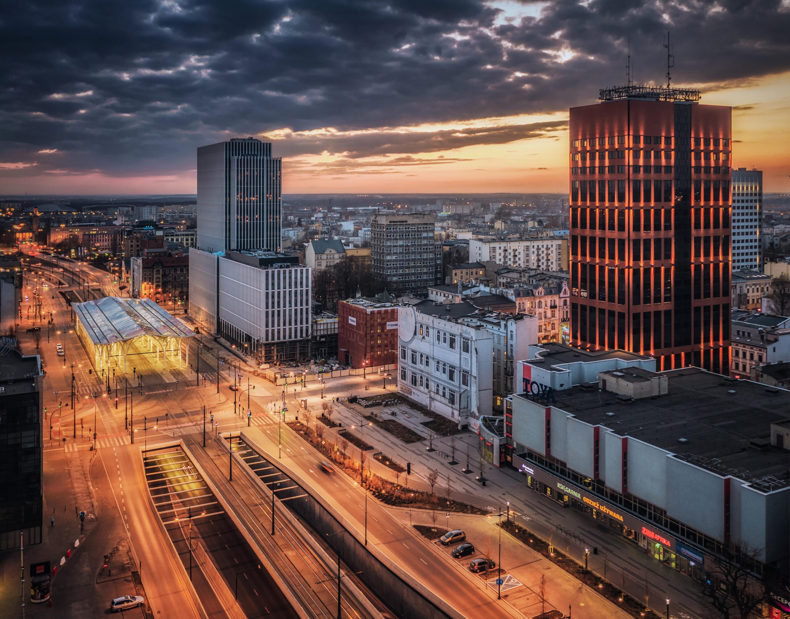 Biurowiec Red Tower usytuowany jest w rozpoznawalnej części Łodzi, przy ul. Piotrkowskiej, jednej z najbardziej znanych handlowych ulic w kraju.